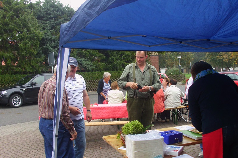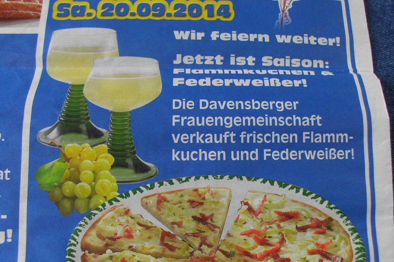 Zum Jubiläum bot Paul Elbers vom Donnerstag bis zum Samstag besondere Aktionen mit örtlichen Vereinen und Einrichtungen an. Wir von der Kfd Davensberg nahmen auch teil und verkauften Flammkuchen sowie Federweißer. .